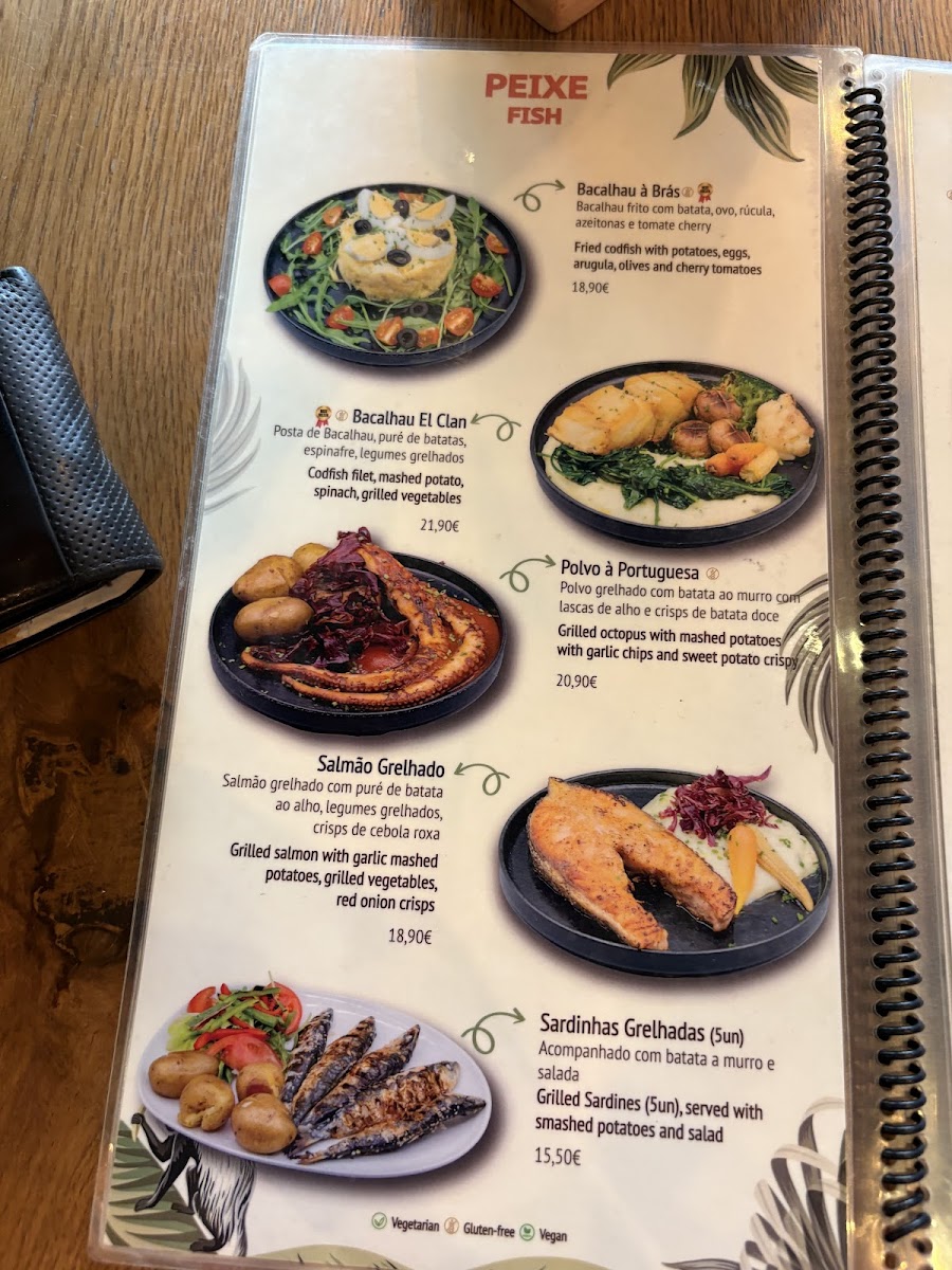 The menu highlights a range of flavors, from grilled sardines and the iconic Bacalhau in several versions, to indulgent dishes like Paella de Marisco and savory chicken wings. Sweet touches, such as churros, provide a pleasant conclusion to the experience without overwhelming. These choices reflect a balance of tradition and casual enjoyment that aligns well with the inviting, unpretentious setting of the restaurant.